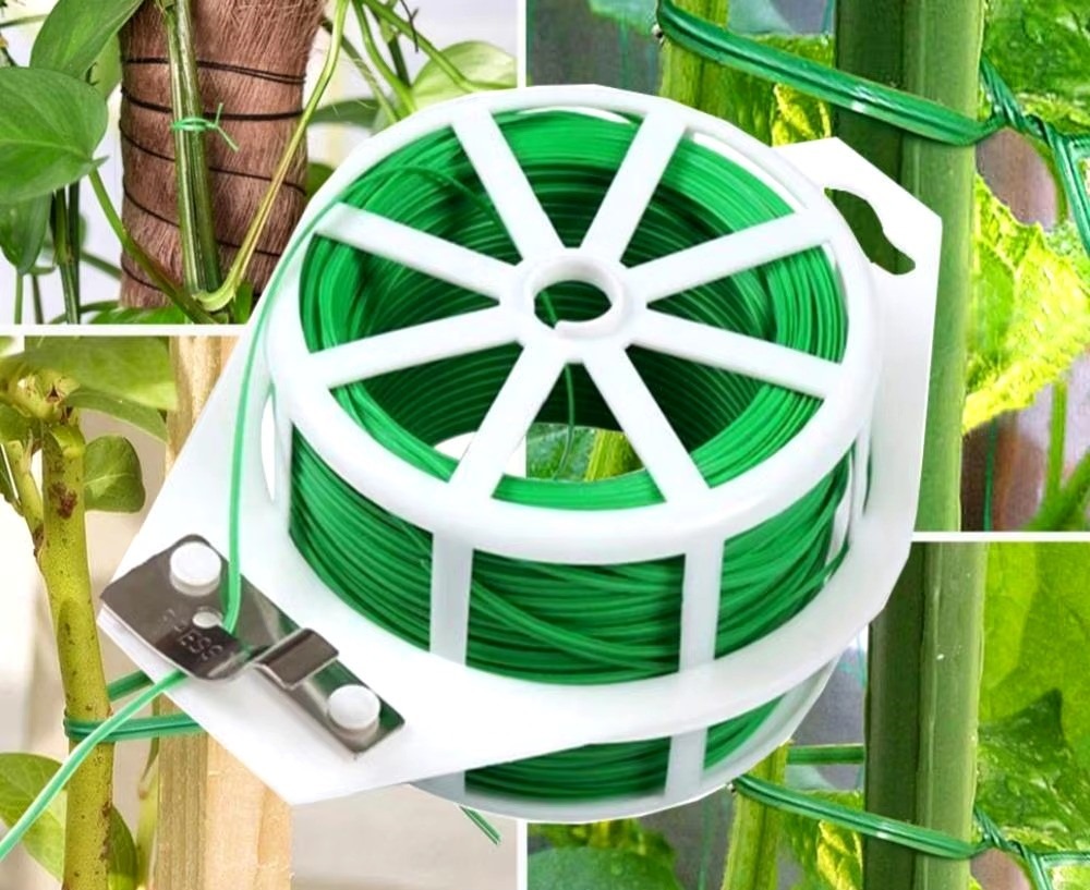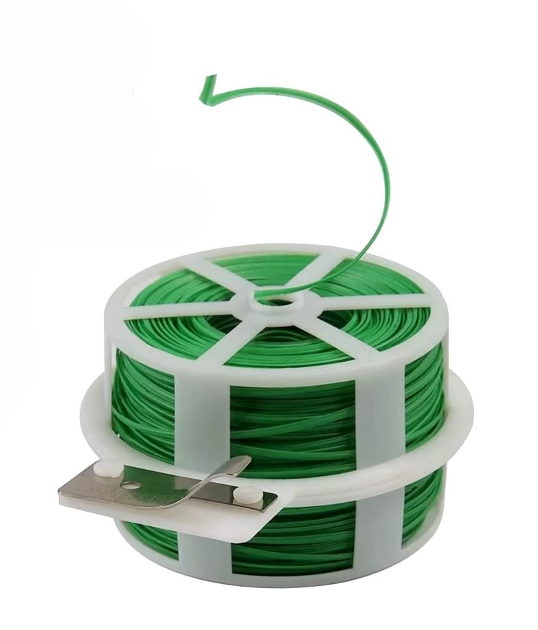 Alambre de hierro revestido de plástico verde, ideal para entutorar todo tipo de plantas.